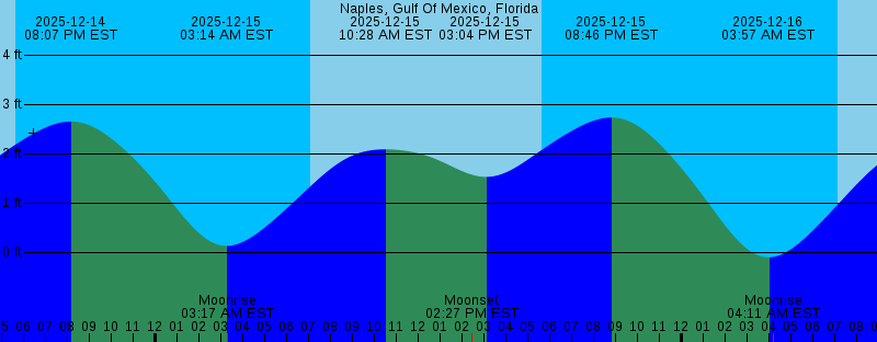 2025-12-14 01:55 PM EST Moonset 2025-12-14 02:15 PM EST 1.37 feet Low Tide 2025-12-14 05:37 PM EST Sunset 2025-12-14 08:07 PM EST 2.65 feet High Tide 2025-12-15 03:14 AM EST 0.13 feet Low Tide 2025-12-15 03:17 AM EST Moonrise 2025-12-15 07:07 AM EST Sunrise 2025-12-15 10:28 AM EST 2.09 feet High Tide 2025-12-15 02:27 PM EST Moonset 2025-12-15 03:04 PM EST 1.53 feet Low Tide 2025-12-15 05:37 PM EST Sunset 2025-12-15 08:46 PM EST 2.73 feet High Tide 2025-12-16 03:57 AM EST -0.11 feet Low Tide 2025-12-16 04:11 AM EST Moonrise 2025-12-16 07:07 AM EST Sunrise 2025-12-16 11:11 AM EST 2.15 feet High Tide 2025-12-16 03:02 PM EST Moonset 2025-12-16 03:49 PM EST 1.63 feet Low Tide 2025-12-16 05:38 PM EST Sunset 2025-12-16 09:24 PM EST 2.81 feet High Tide 2025-12-17 04:38 AM EST -0.29 feet Low Tide 2025-12-17 05:06 AM EST Moonrise 2025-12-17 07:08 AM EST Sunrise 2025-12-17 11:41 AM EST 2.19 feet High Tide 2025-12-17 03:41 PM EST Moonset 2025-12-17 04:30 PM EST 1.68 feet Low Tide 2025-12-17 05:38 PM EST Sunset 2025-12-17 09:59 PM EST 2.88 feet High Tide 2025-12-18 05:17 AM EST -0.43 feet Low Tide 2025-12-18 06:01 AM EST Moonrise 2025-12-18 07:08 AM EST Sunrise 2025-12-18 12:10 PM EST 2.21 feet High Tide |