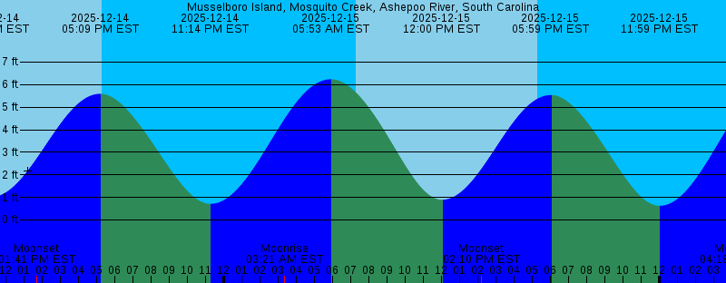 2025-12-14 11:14 PM EST 0.71 feet Low Tide 2025-12-15 03:21 AM EST Moonrise 2025-12-15 05:53 AM EST 6.24 feet High Tide 2025-12-15 07:16 AM EST Sunrise 2025-12-15 12:00 PM EST 0.90 feet Low Tide 2025-12-15 02:10 PM EST Moonset 2025-12-15 05:17 PM EST Sunset 2025-12-15 05:59 PM EST 5.54 feet High Tide 2025-12-15 11:59 PM EST 0.63 feet Low Tide 2025-12-16 04:18 AM EST Moonrise 2025-12-16 06:40 AM EST 6.39 feet High Tide 2025-12-16 07:16 AM EST Sunrise 2025-12-16 12:47 PM EST 0.75 feet Low Tide 2025-12-16 02:41 PM EST Moonset 2025-12-16 05:18 PM EST Sunset 2025-12-16 06:48 PM EST 5.55 feet High Tide 2025-12-17 12:42 AM EST 0.53 feet Low Tide 2025-12-17 05:16 AM EST Moonrise 2025-12-17 07:17 AM EST Sunrise 2025-12-17 07:26 AM EST 6.53 feet High Tide 2025-12-17 01:31 PM EST 0.61 feet Low Tide 2025-12-17 03:18 PM EST Moonset 2025-12-17 05:18 PM EST Sunset 2025-12-17 07:34 PM EST 5.60 feet High Tide 2025-12-18 01:24 AM EST 0.44 feet Low Tide 2025-12-18 06:14 AM EST Moonrise 2025-12-18 07:18 AM EST Sunrise 2025-12-18 08:09 AM EST 6.63 feet High Tide 2025-12-18 02:13 PM EST 0.49 feet Low Tide 2025-12-18 04:01 PM EST Moonset 2025-12-18 05:18 PM EST Sunset |
